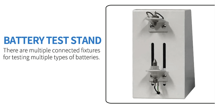 This machine is used to test the voltage and internal resistance of lithium battery. It has many kinds of clamps. It can test cylindrical battery, pouch cell and prismatic cell.