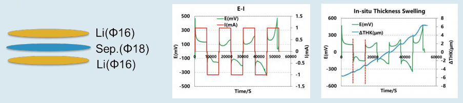 Assemble Li-Li symmetric cell to test the thickness change during lithium deposition; test parameters: